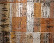 I figured spraying metallic paints over the matt and gloss below would look good if I could speed-dry the surface of the paint to make it crack and tear. After that I found I could get an antique effect by working in copper and rust patinas.